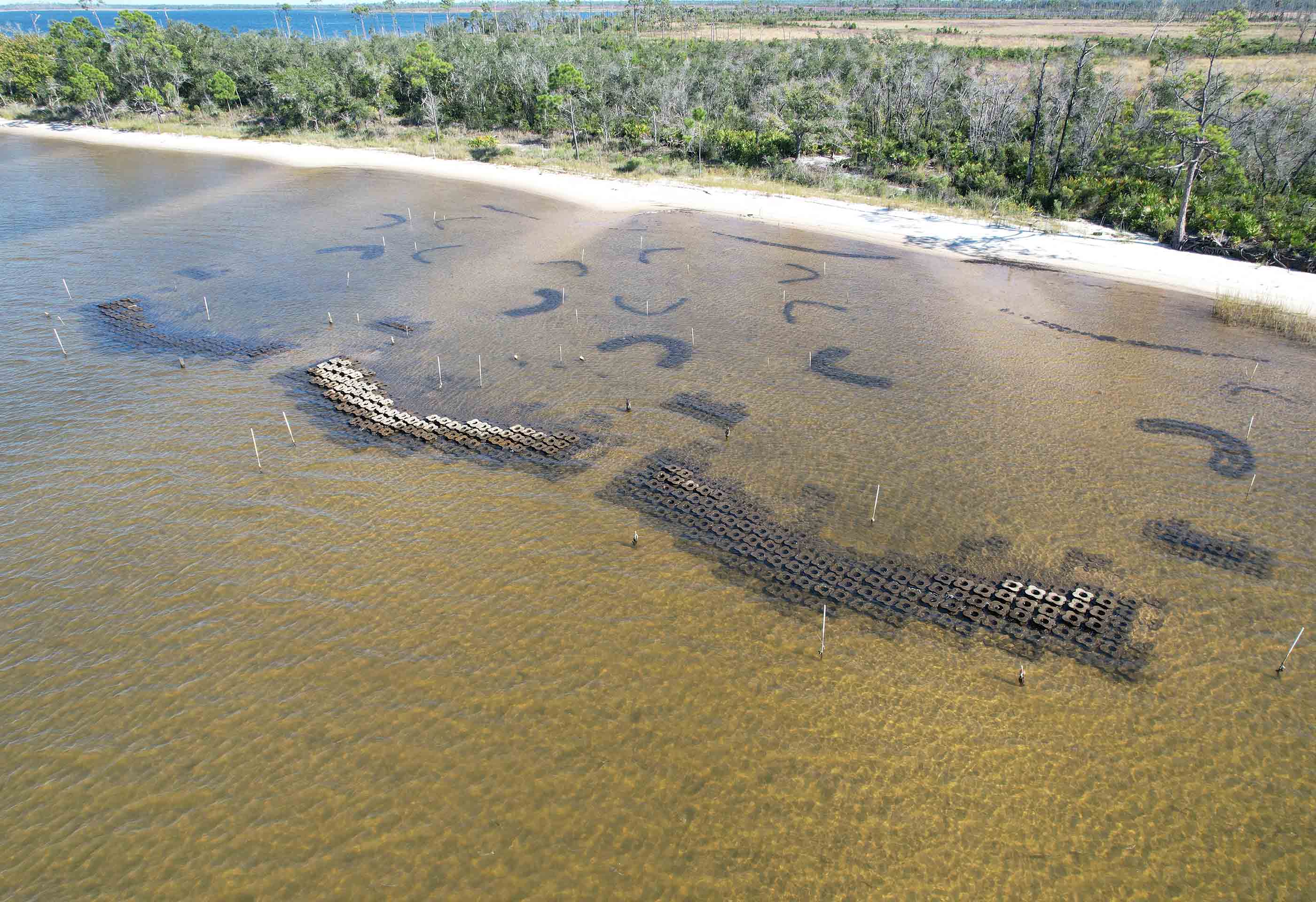 The study focused on a modular reef system placed offshore of a military site along the Florida Panhandle. The reef was designed to evolve naturally with marshes, seagrass and other aspects of coastal habitats to form what the researchers call a “Living Shoreline MosaicTM.” Built from porous concrete modules to reduce wave power, the hybrid structure combines engineering and natural processes and since has been colonized by oysters and other marine life, forming a natural reef that builds on and strengthens the original framework.